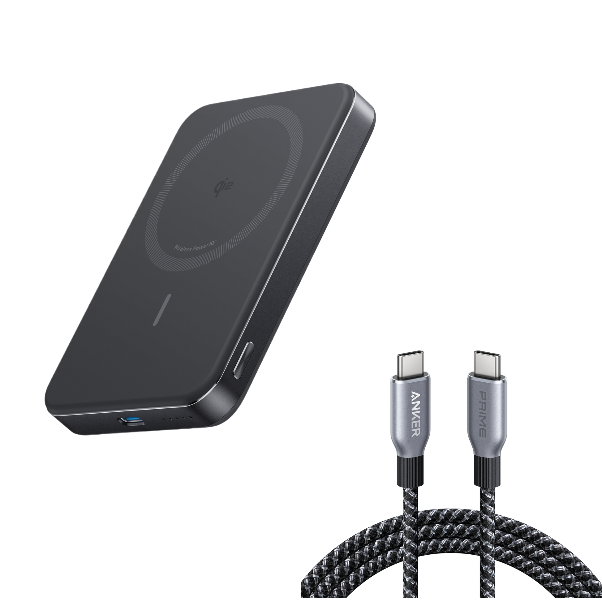 Anker MagGo Power Bank (10K, Slim) and Anker Prime USB-C to USB-C Cable (240W, Upcycled-Braided)