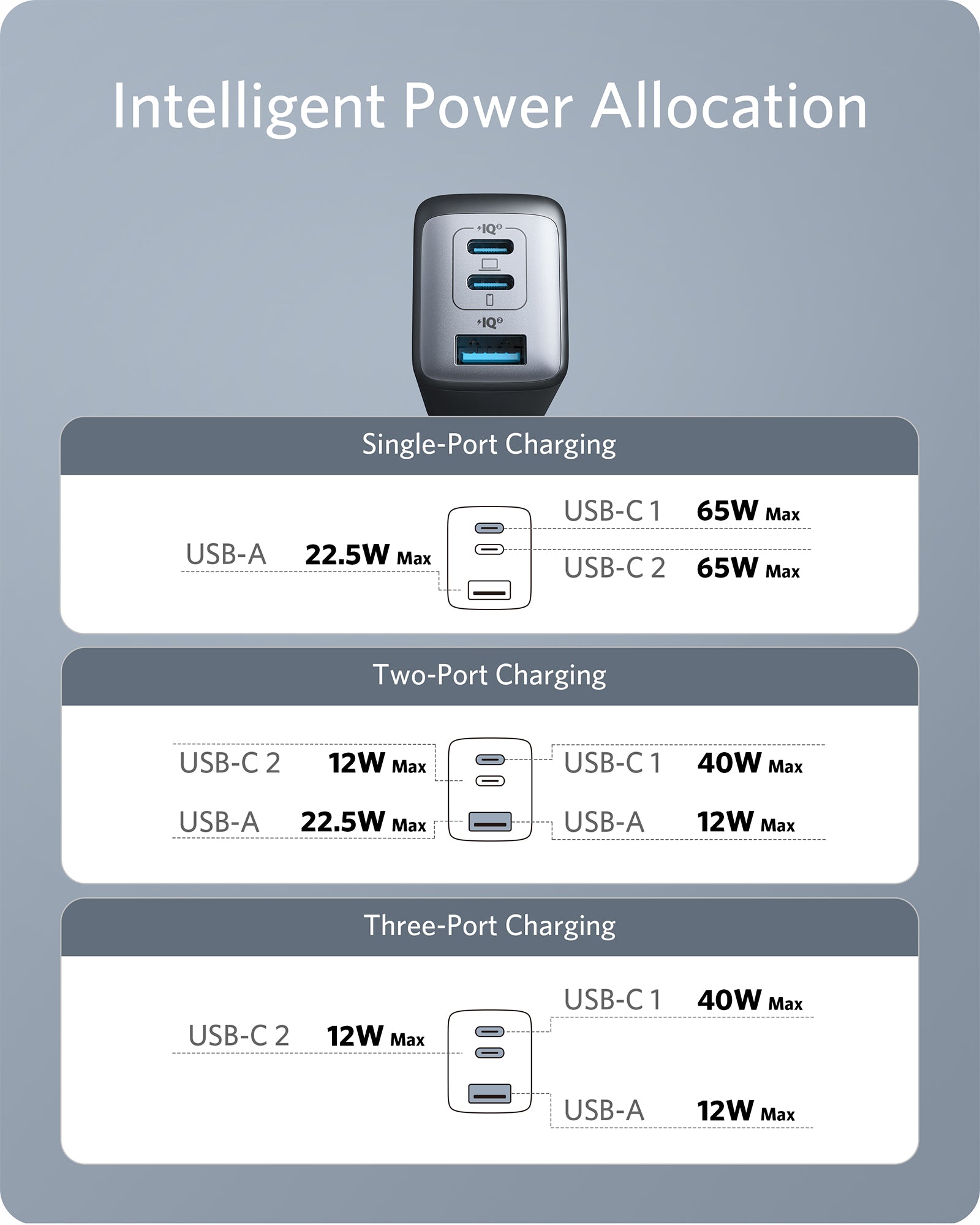 - High-Speed Charging: Connect a single device to get a 65W max charge—that’s enough to power up a 2020 MacBook Pro 13″ at full speed. And when you connect three devices, power will be distributed efficiently between ports to ensure you get the best charge.