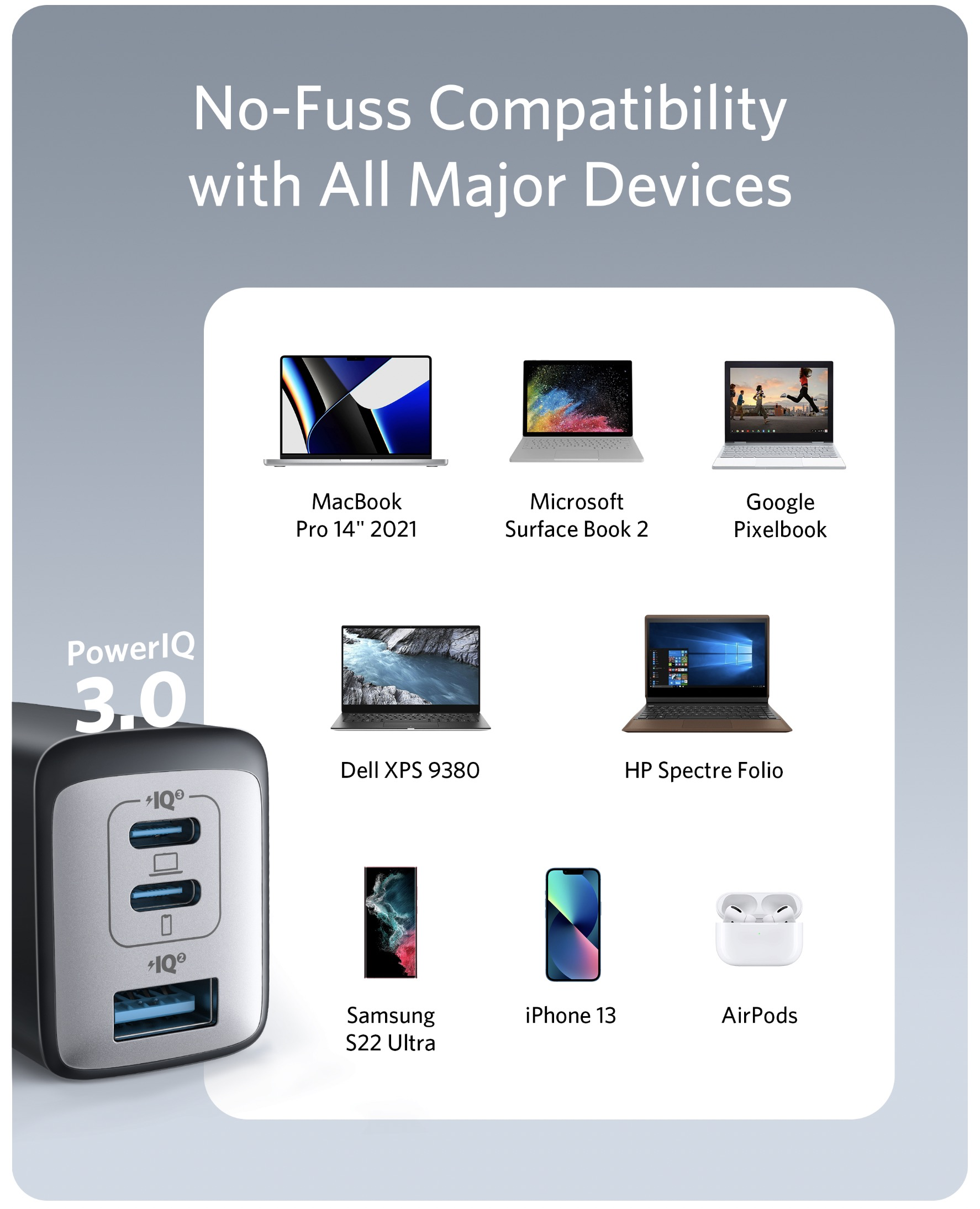 - Compact Design: Power up to 3 devices with a charger that’s roughly the size of an AirPods Pro case.