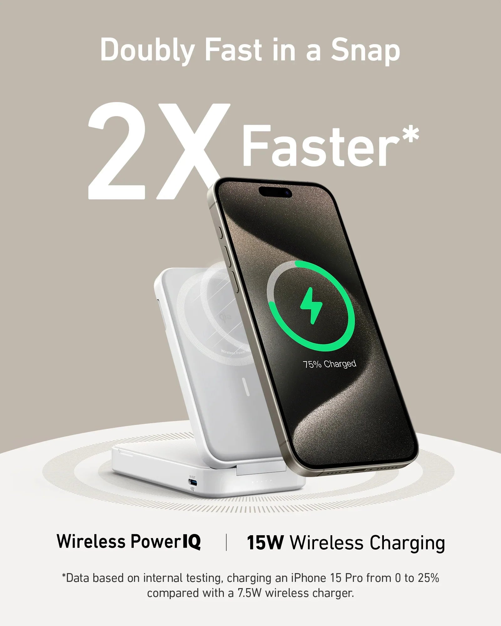 - Double Up on Speed: Enjoy 15W ultra-fast wireless charging and power up your devices 2X faster*. Get your iPhone 15 Pro from 0 to 50% in just 45 minutes.