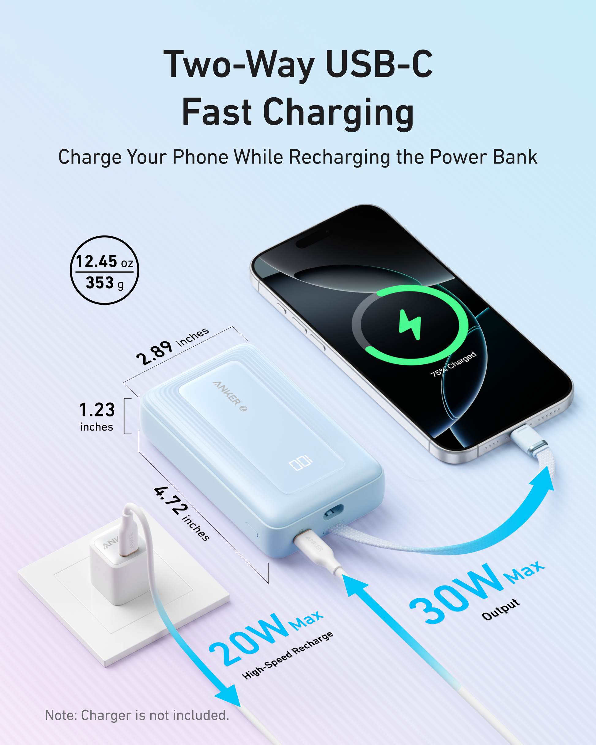 - 30W Fast Charging: Supports 30W fast charging through the built-in USB-C cable or USB-C port.