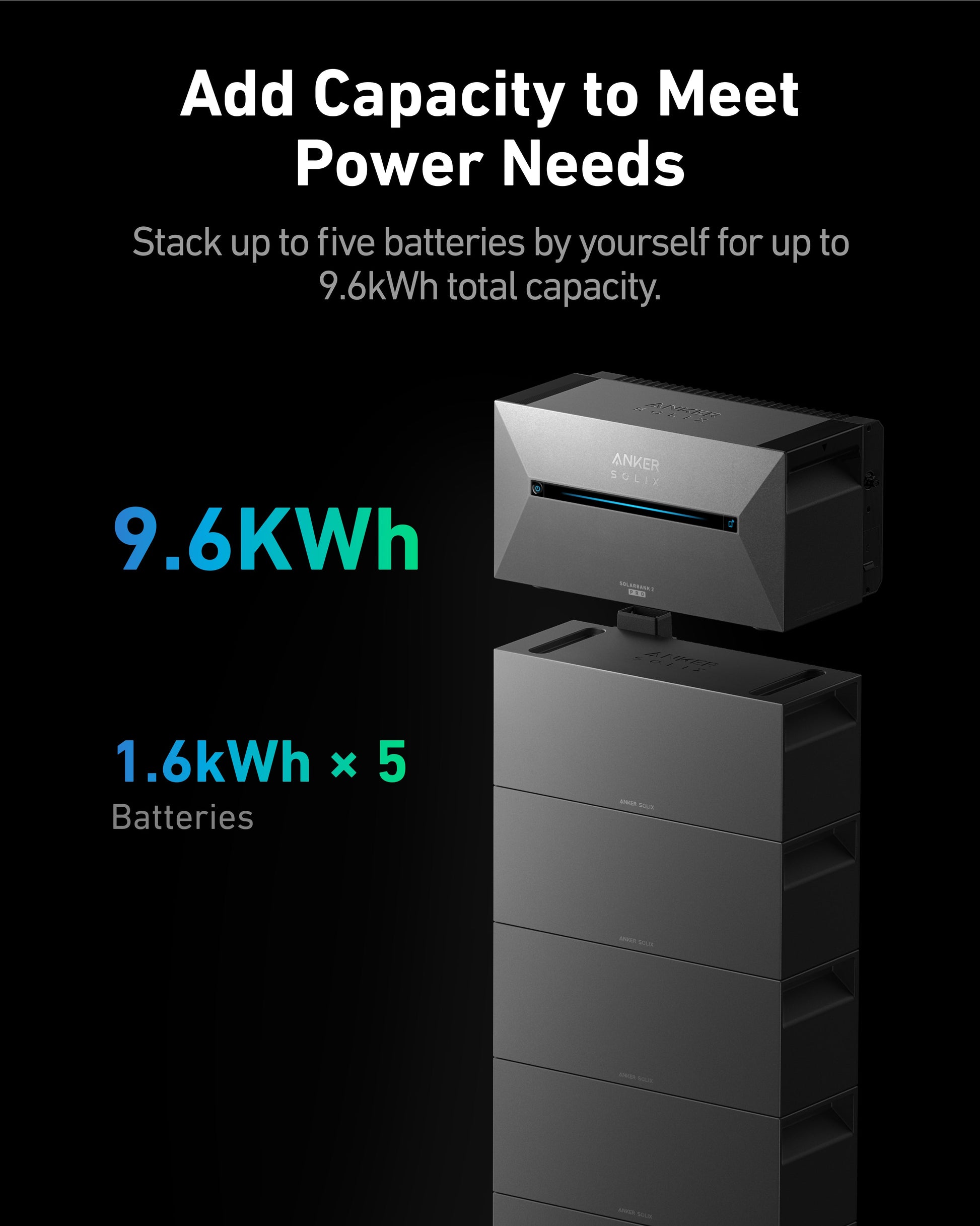 Customize Capacity Easily: Add up to five expansion batteries for more power. Just stack and power.