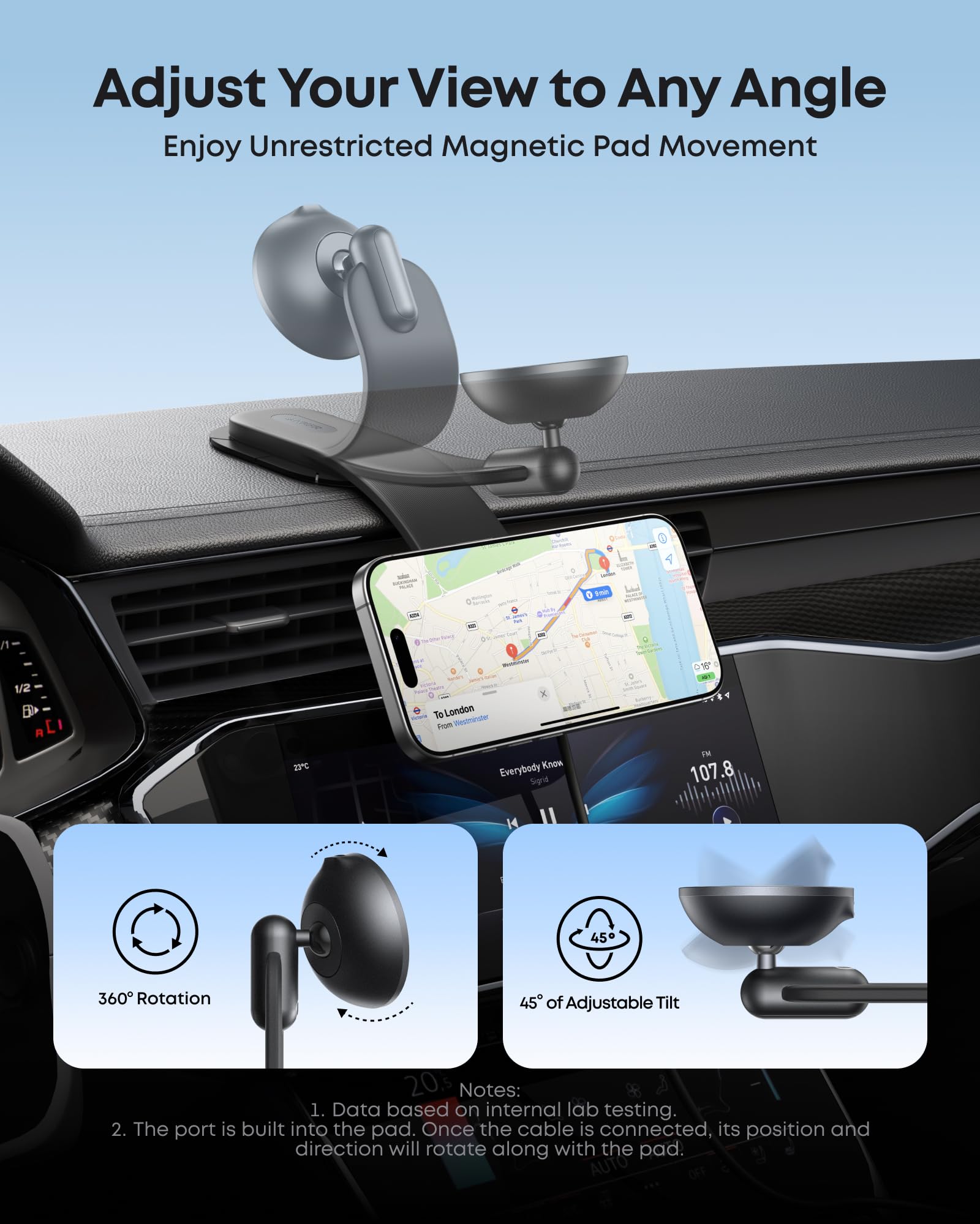 - Steady Hold on Rough Roads: The magnetic force of 16N keeps your phone stable and secure even on the bumpiest roads. Automotive-grade 3M adhesive provides a strong, lasting bond to prevent the mount from coming loose.
