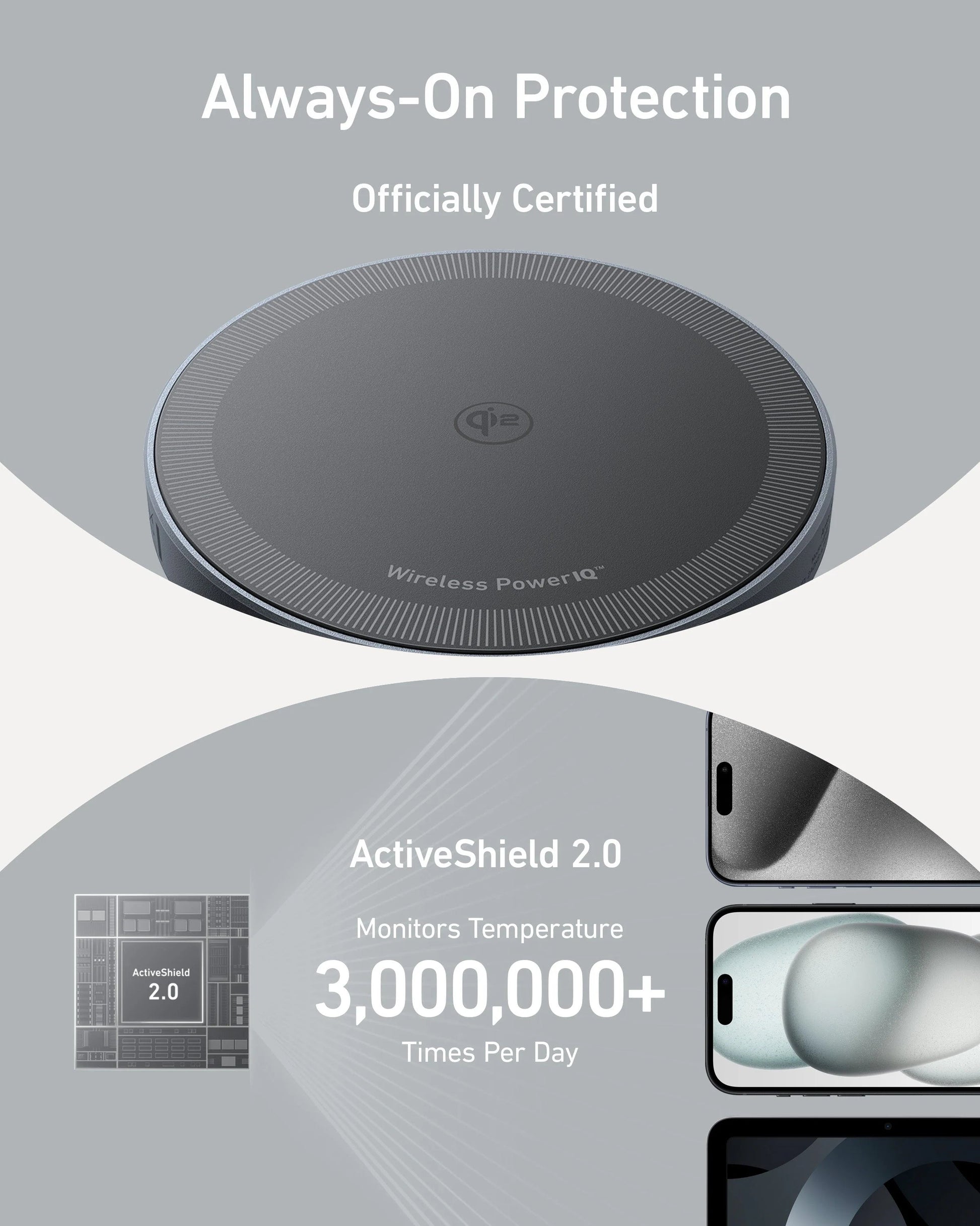 - Non-Stop Reliable Protection: Rest easy with consistent protection, brought to you by Qi2 certification and the ActiveShield safety system, which monitors temperature up to 3 million times a day.