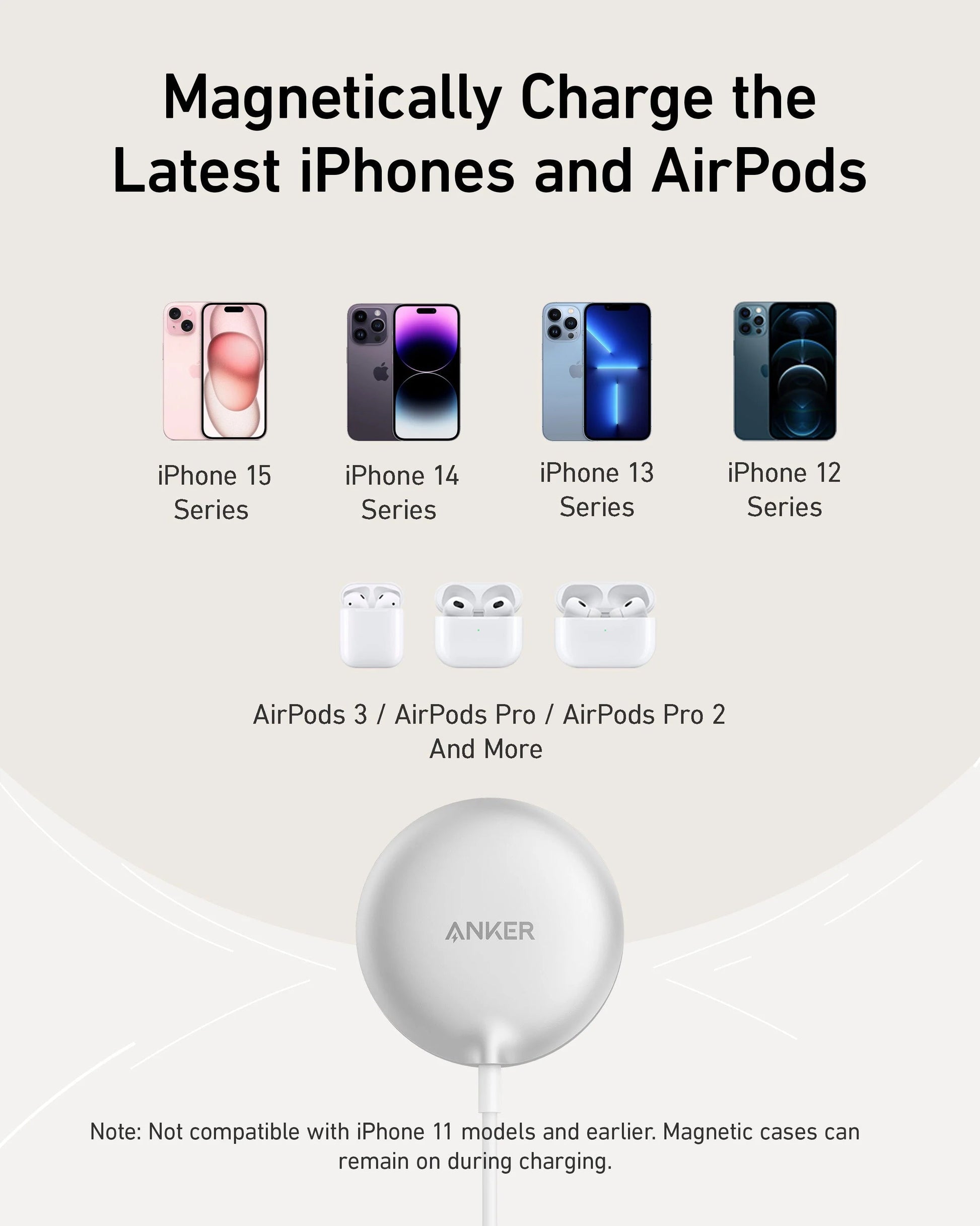 - Quick Snap to Charge: Featuring strong built-in magnets, effortlessly snap to charge the latest iPhones with magnetic cases for a hassle-free and precise charging experience.
