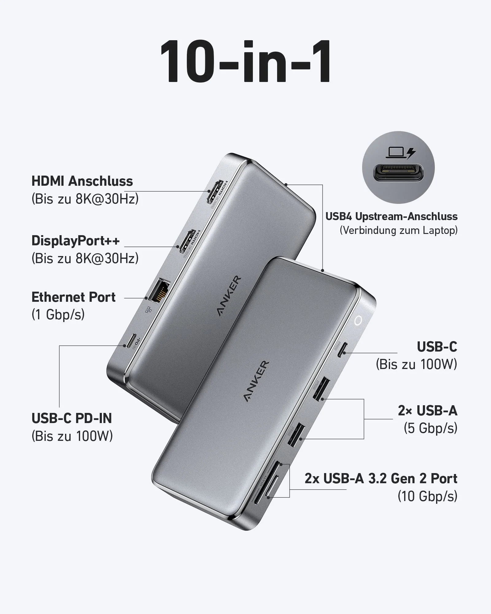 Anker <b>563</b> USB-C Hub (10-in-1, Dual 4K HDMI, for MacBook)