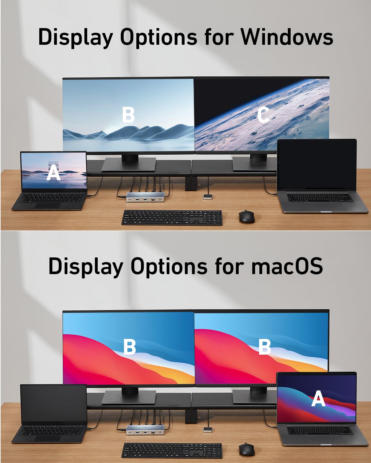 - Dual Media Display Brilliance: Immerse yourself in stunning 4K@60Hz resolution on dual monitors simultaneously, thanks to the DisplayPort and HDMI ports. (Note: The USB-C port does not support screen casting.)