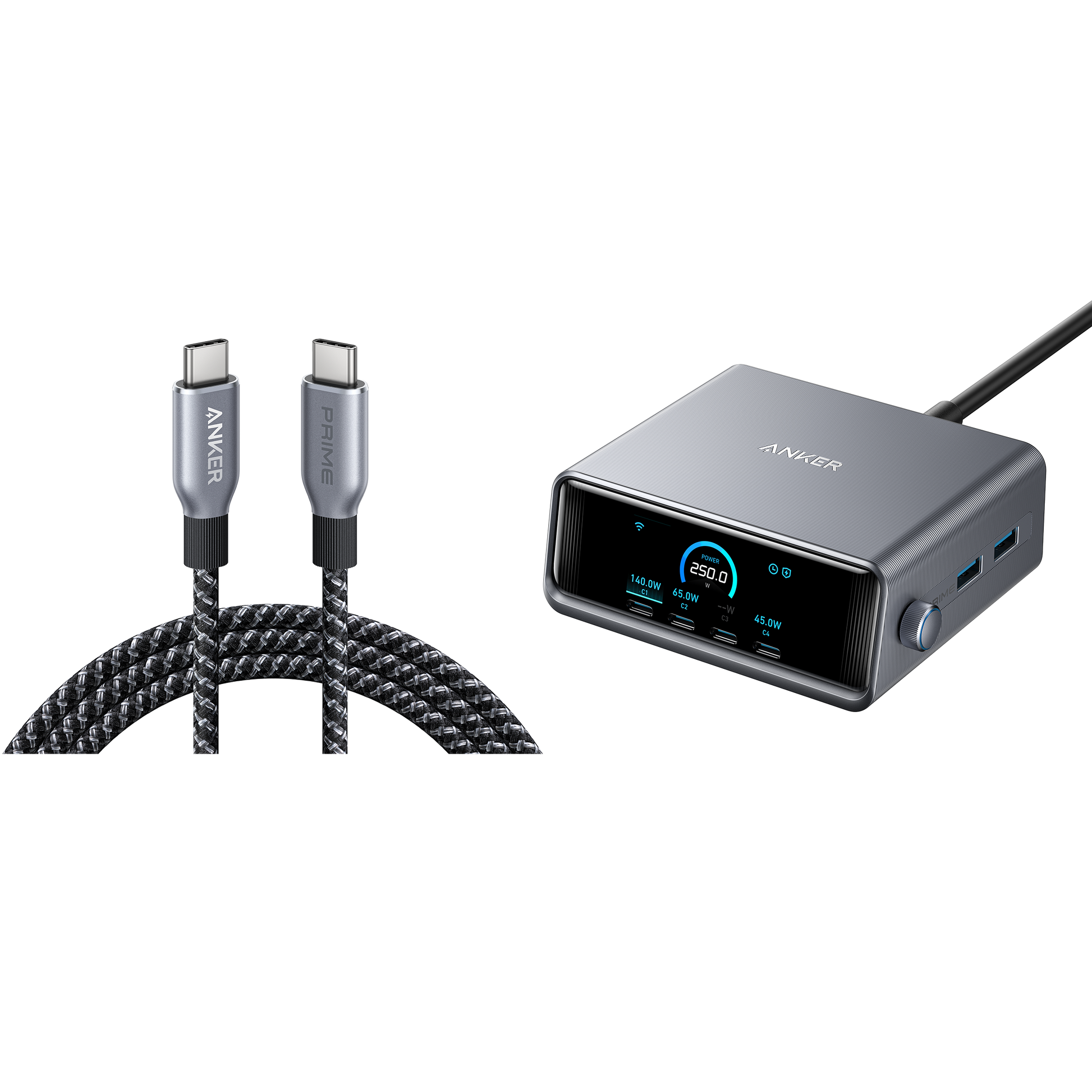 Anker Prime Charger (250W, 6 Ports, GaNPrime) with USB-C to USB-C Cable (240W)